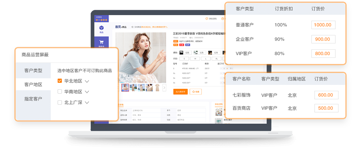 根据客户类型、地区建立差异化定价方案,指定客户订货价,设置客户结算方式、账期类型以及客户可订购的商品